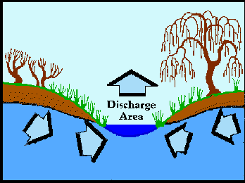 The place that groundwater comes up to the surface. Groundwater discharge. | arrow_right_alt | Discharge zone |