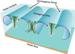 Cold nutrient rich water moving toward the surface