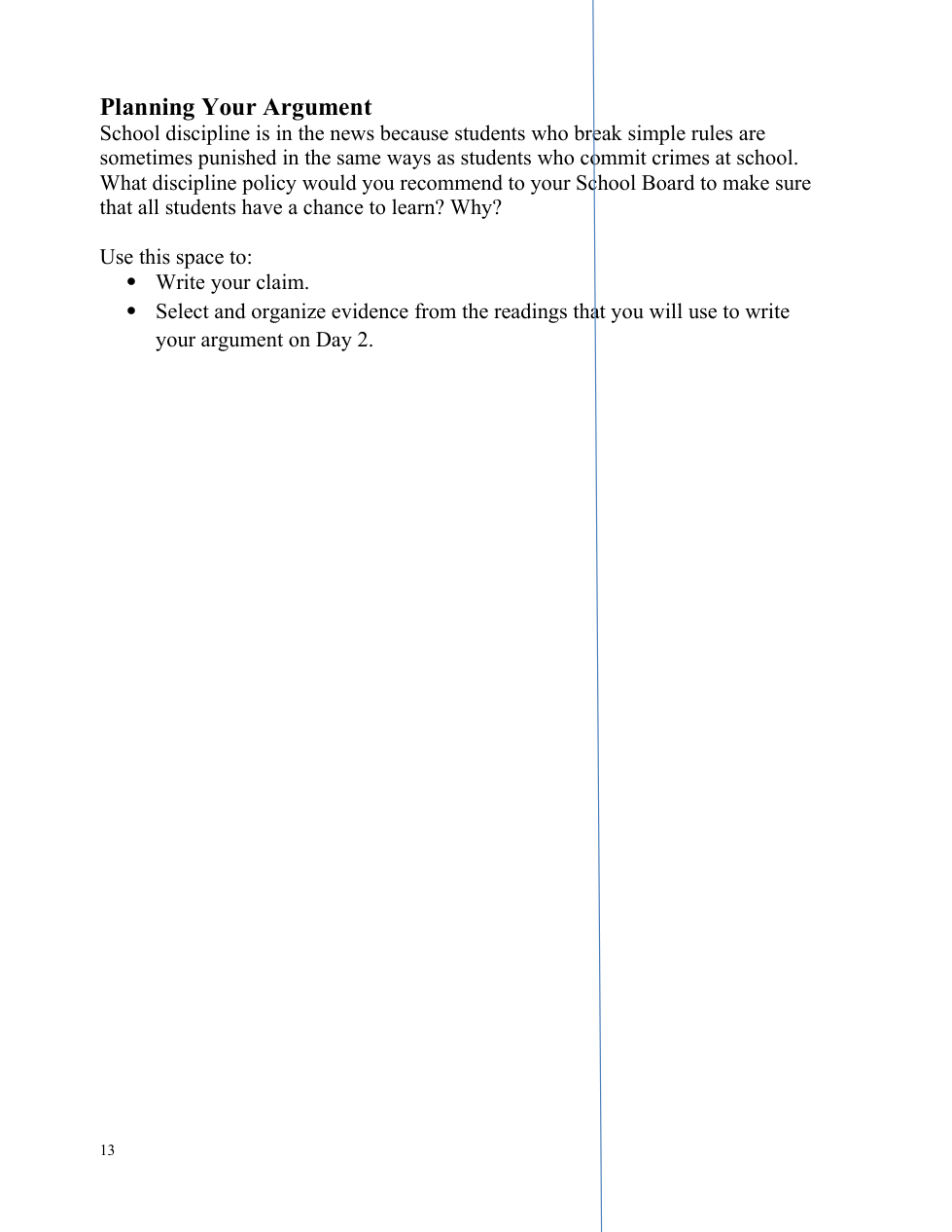 Plan your argument. Write your ideas for your claim and evidence to prepare for you writing.