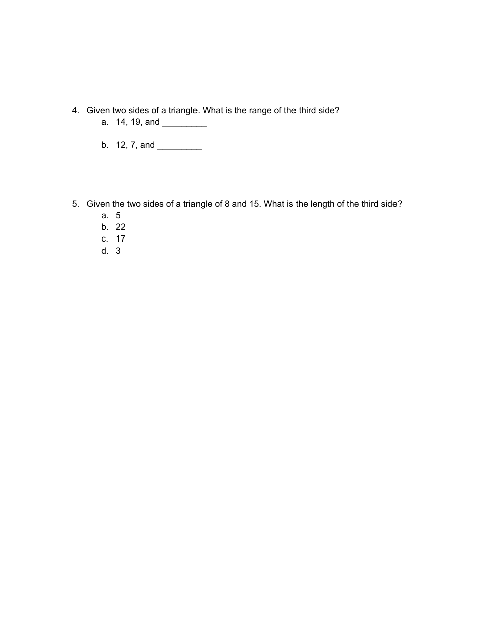 Given the two sides of a triangle of 8 and 15. What is the length of the third side?