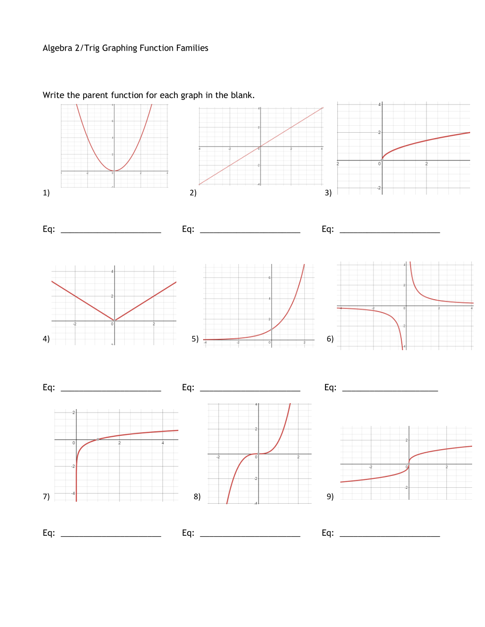extra-HW Parent Functions/Solving Equations