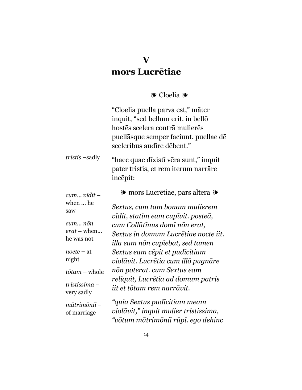 “Cloelia puella parva est,” māter inquit, “sed bellum erit.