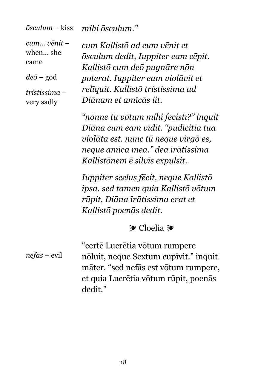 fābula est dē illā Kallistōne, quae vōtum rūpit et poenās dedit.”