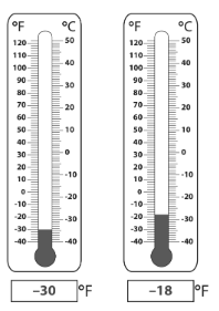 2. The thermometers on the right show the temperatures at two different times in a city in Alaska. Which of the following integers represents a temperature that is below the temperatures shown on the thermometers?