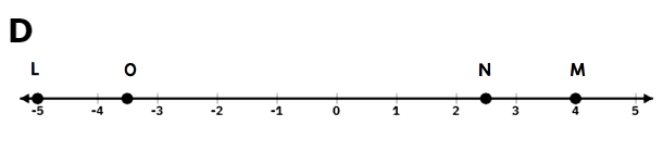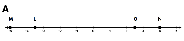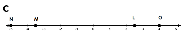 Point L: 2.5 Point M: -3.5 Point N: -5 Point O: 4