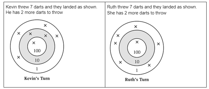 The person who has the highest score after throwing 9 darts wins the game.Can Jill win the game?