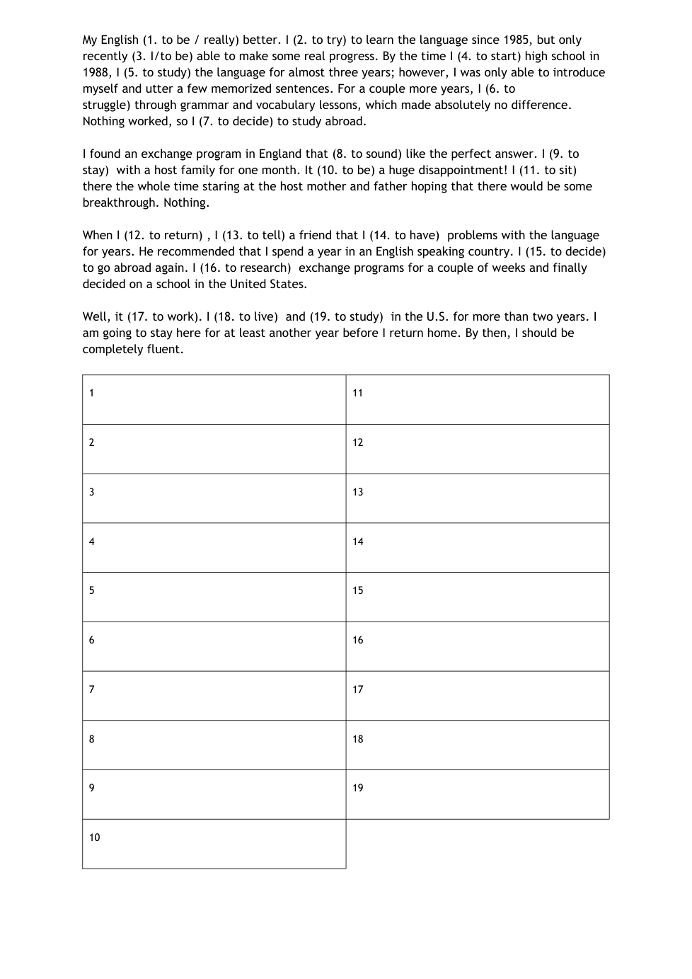 Fill in the test. Double check your answers. Make sure you have no writing mistakes because one letter wrong means your answer is wrong.