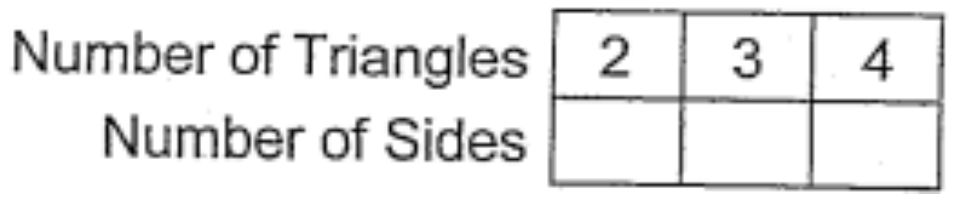 A triangle has 3 sides. How many sides would 2 triangles, 3 triangles, and 4 triangles have?