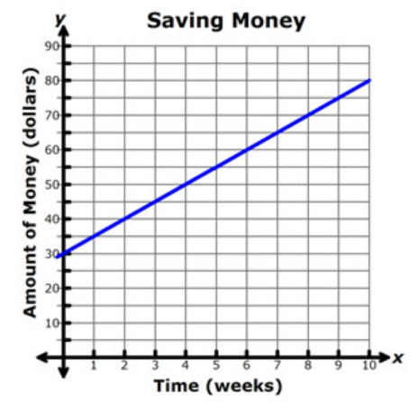 Life Savings--Andrea is plotting how much money she has in her bank account over time. She starts with $30 and every week she saves $5 more.