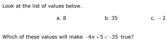 Which of the values will make the inequality true?