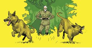 The baying of the hounds drew nearer, then still nearer, nearer, ever nearer. On a ridge Rainsford climbed a tree. Down a watercourse, not a quarter of a mile away, he could see the bush moving. Straining his eyes, he saw the lean figure of General Zaroff; just ahead of him Rainsford made out another figure whose wide shoulders surged through the tall jungle weeds; it was the giant Ivan, and he seemed pulled forward by some unseen force; Rainsford knew that Ivan must be holding the pack in leash.