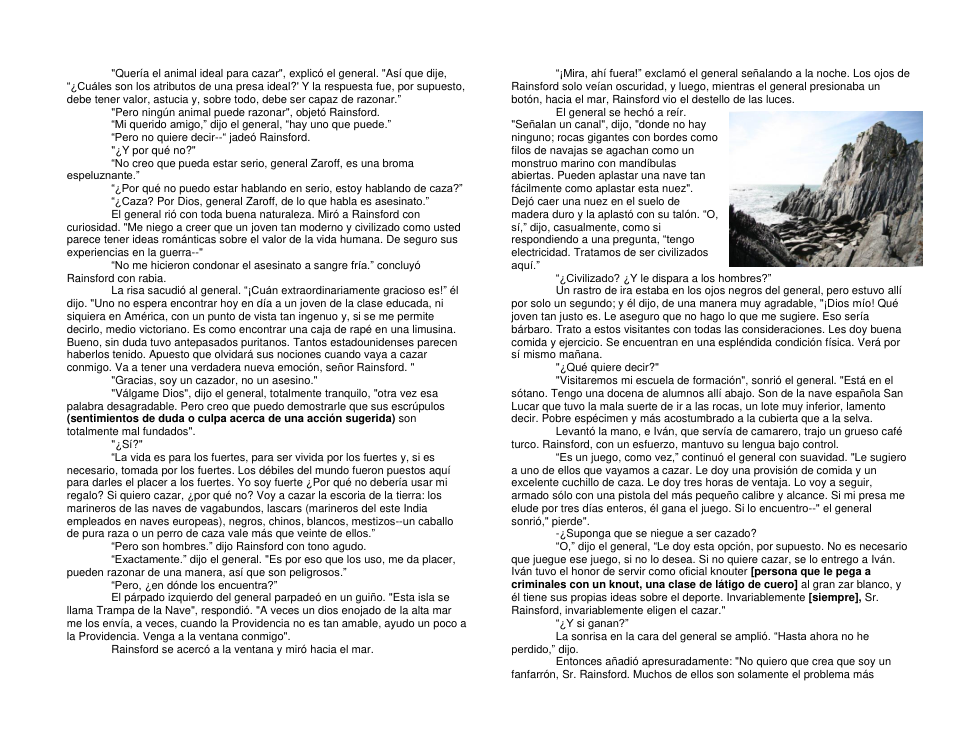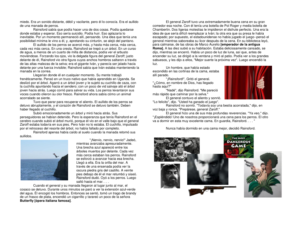 “ ‘Can’t see it,’ remarked Rainsford, trying to peer through the dank tropical night that was palpable as it pressed its thick warm blackness in upon the yacht.’”.