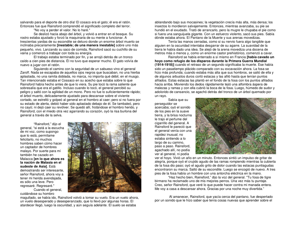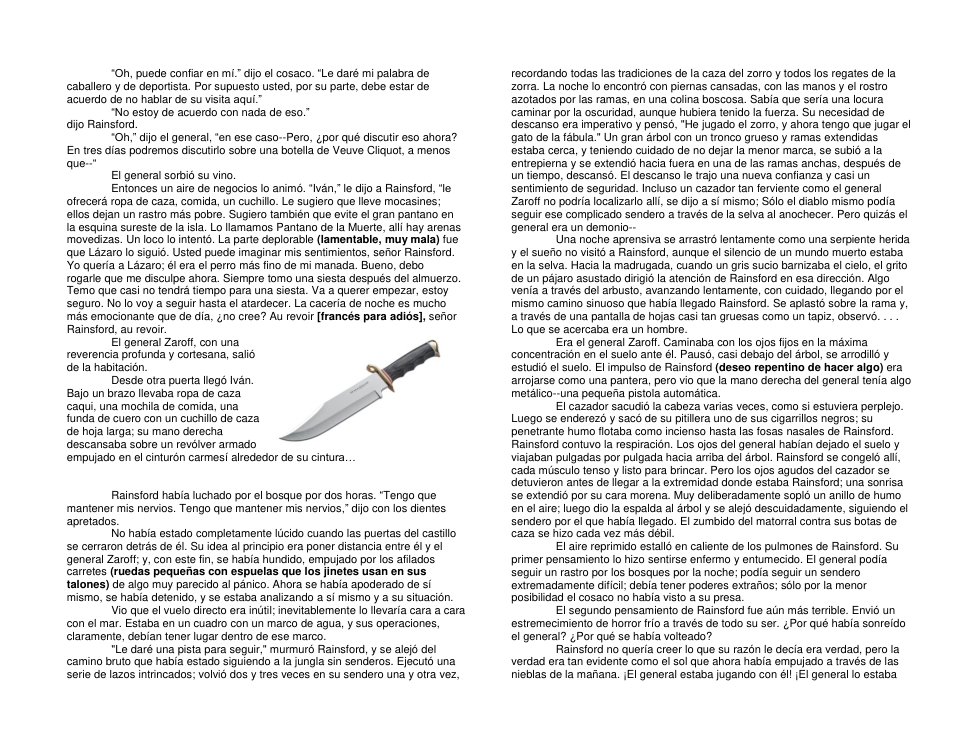 Which detail in the story helps you visualize Rainsford’s fear and confusion?
