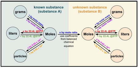 In your own words explain the process of solving a 3 part stoichiometry problem. You can begin from any end of the map to another as long as its a full 3 step process.