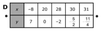 Drag and drop to connect each table of data to its rate of change and its y-intercept.