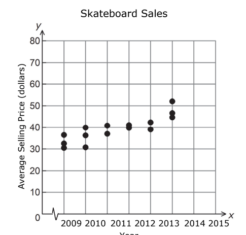 Cool Skates made a scatterplot to show the relationship between the year and the average
