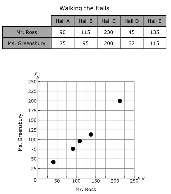 The table shows the number of steps it takes Mr. Ross and Ms. Greensbury to walk the length