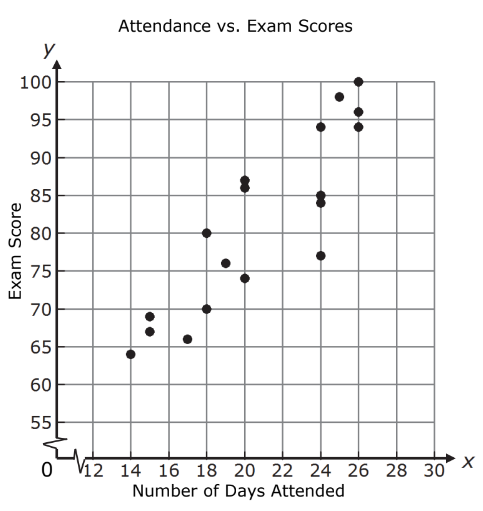 Ms. Suárez made a scatterplot to show the relationship between the number of days a student