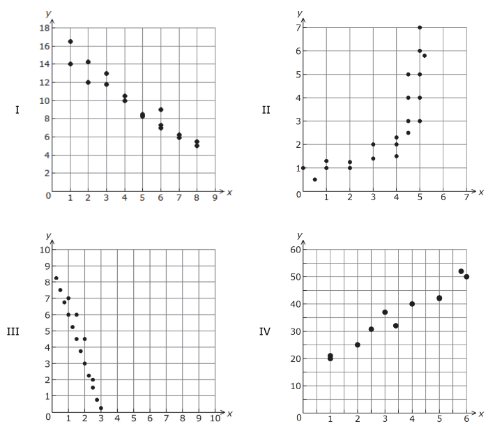 Which scatterplot suggests a negative linear relationship between x and y?