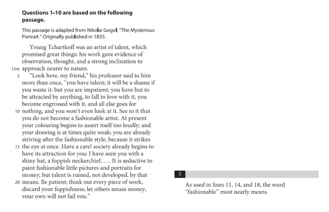 Remember that you do not need to know every single word in a passage to completely understand each passage! Here's the SAT Reading strategy we worked on last time.