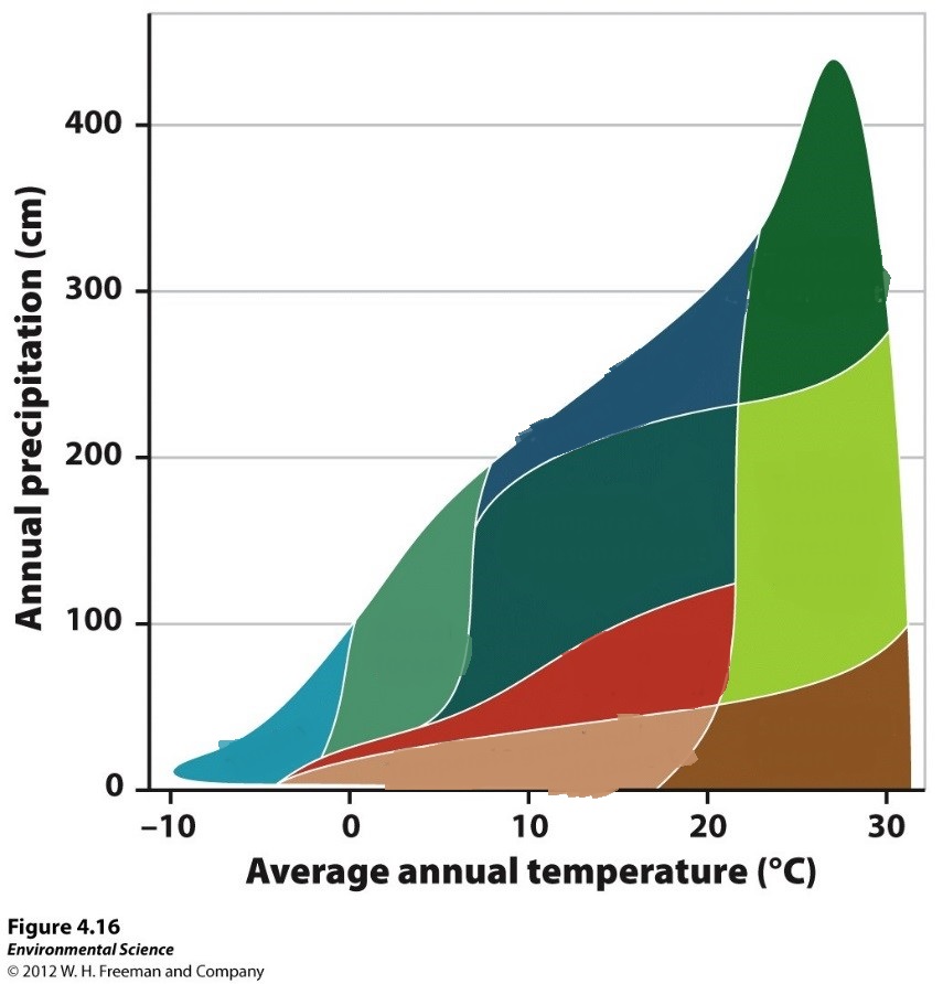 Match the biome with the yearly precipitation/temperature that it receives.