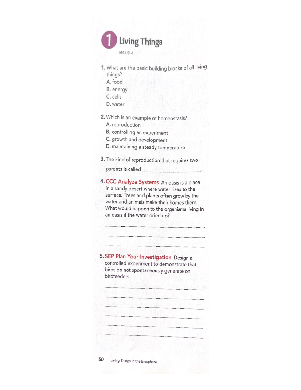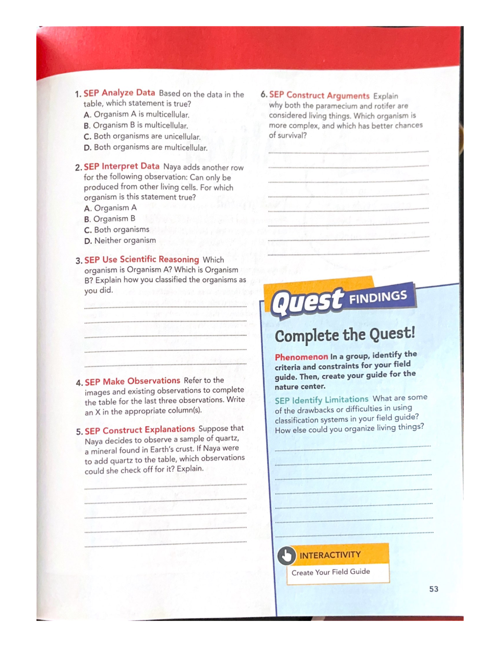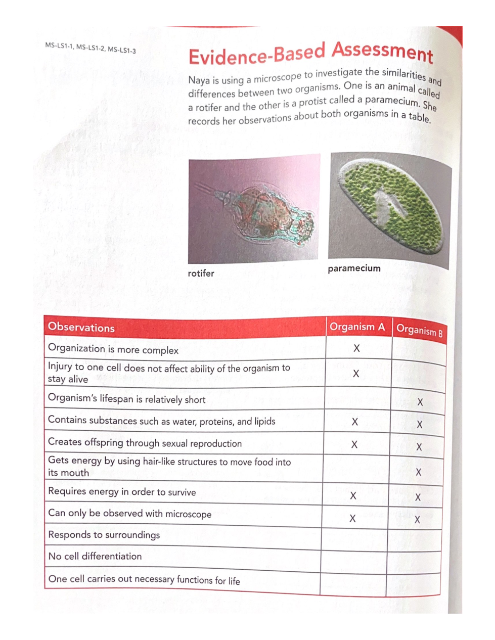 Refer to the Observations on the table: Fill in which organism exhibits which observations: