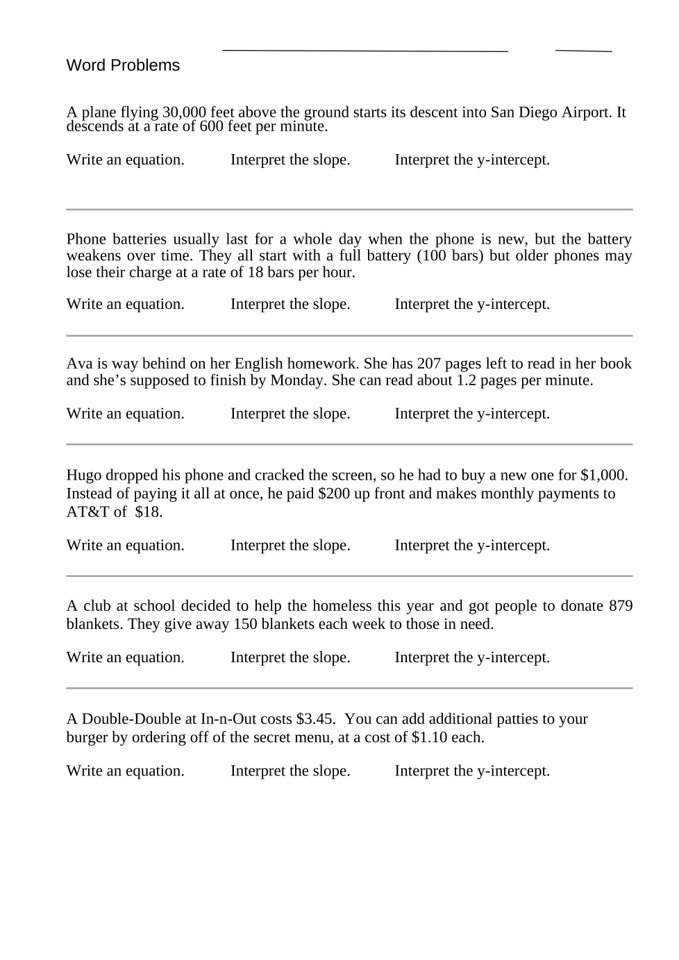 Choose one scenario from above and draw a graph for it on graph paper. (The plane or phone problem are good ones to choose for your graph.)