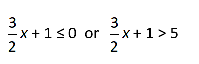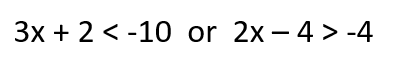 Solve the inequality. Use or between the two inequalities in your answer. Then graph the solution where it says "show your work". When inputting your answer, put a spaces in front and behind the word 'or'.