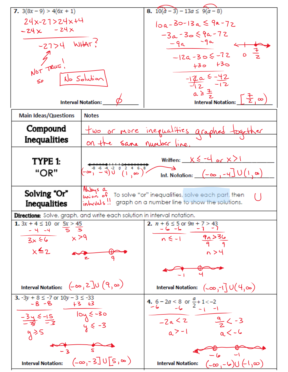 (2) Include a space before and after the word 'or' or for 'and' in your answer for OR statements or AND statements; however, DO NOT use any spaces when creating the interval notation with a U.