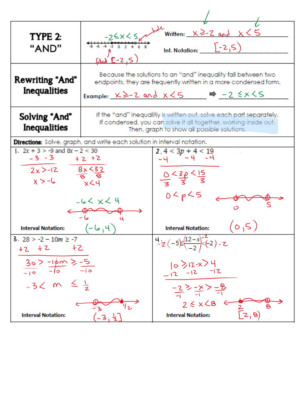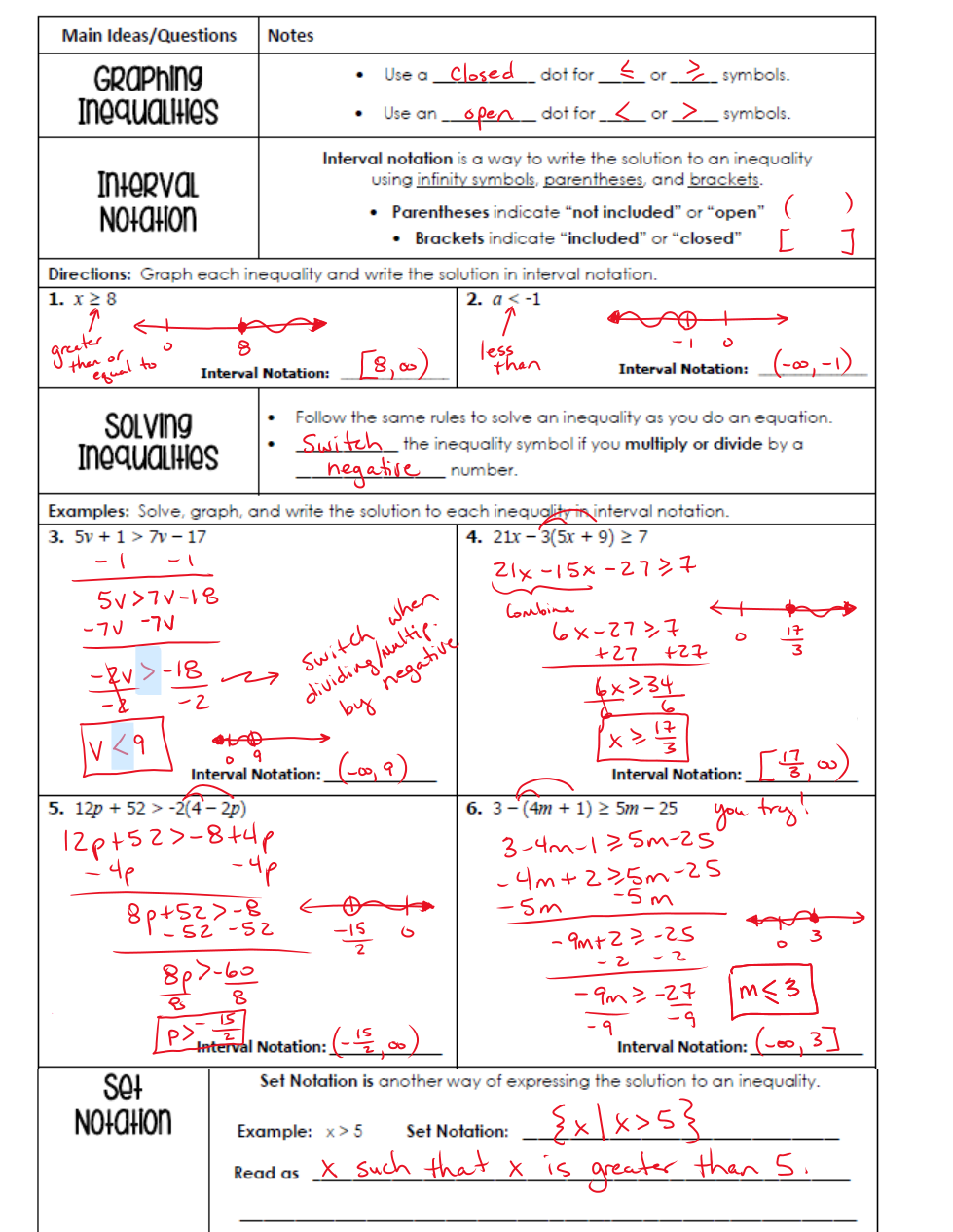 (note: start inside the inequalities: distribute first!! then combine like terms!!)