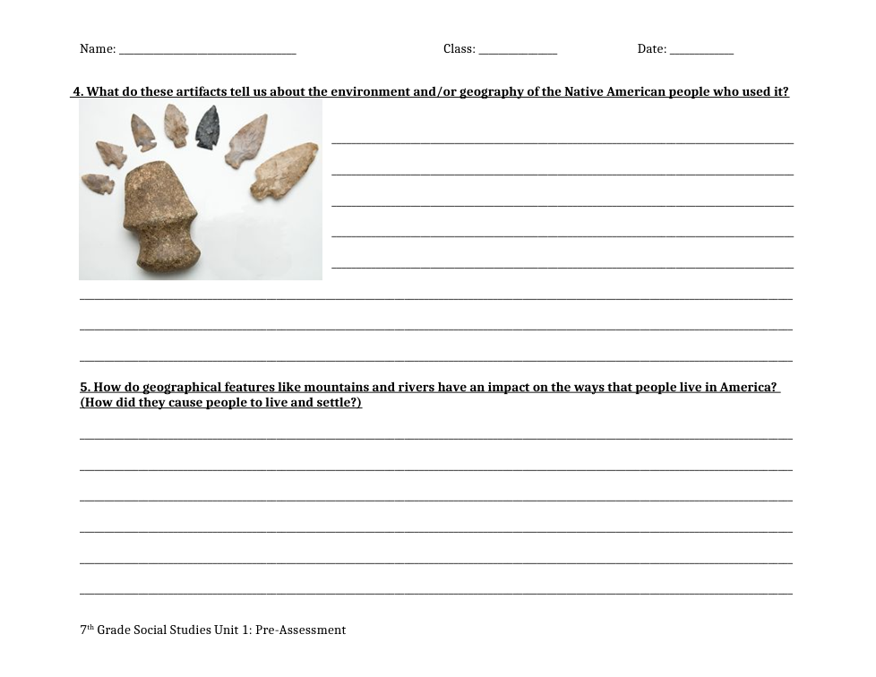 Grade 7: Unit 1: Pre-unit survey (U.S. Geography and Native American Cultures )