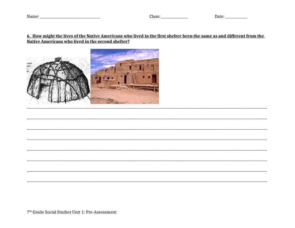 6. How might the lives of the Native Americans who lived in the first shelter been the same as and different from the Native Americans who lived in the second shelter?