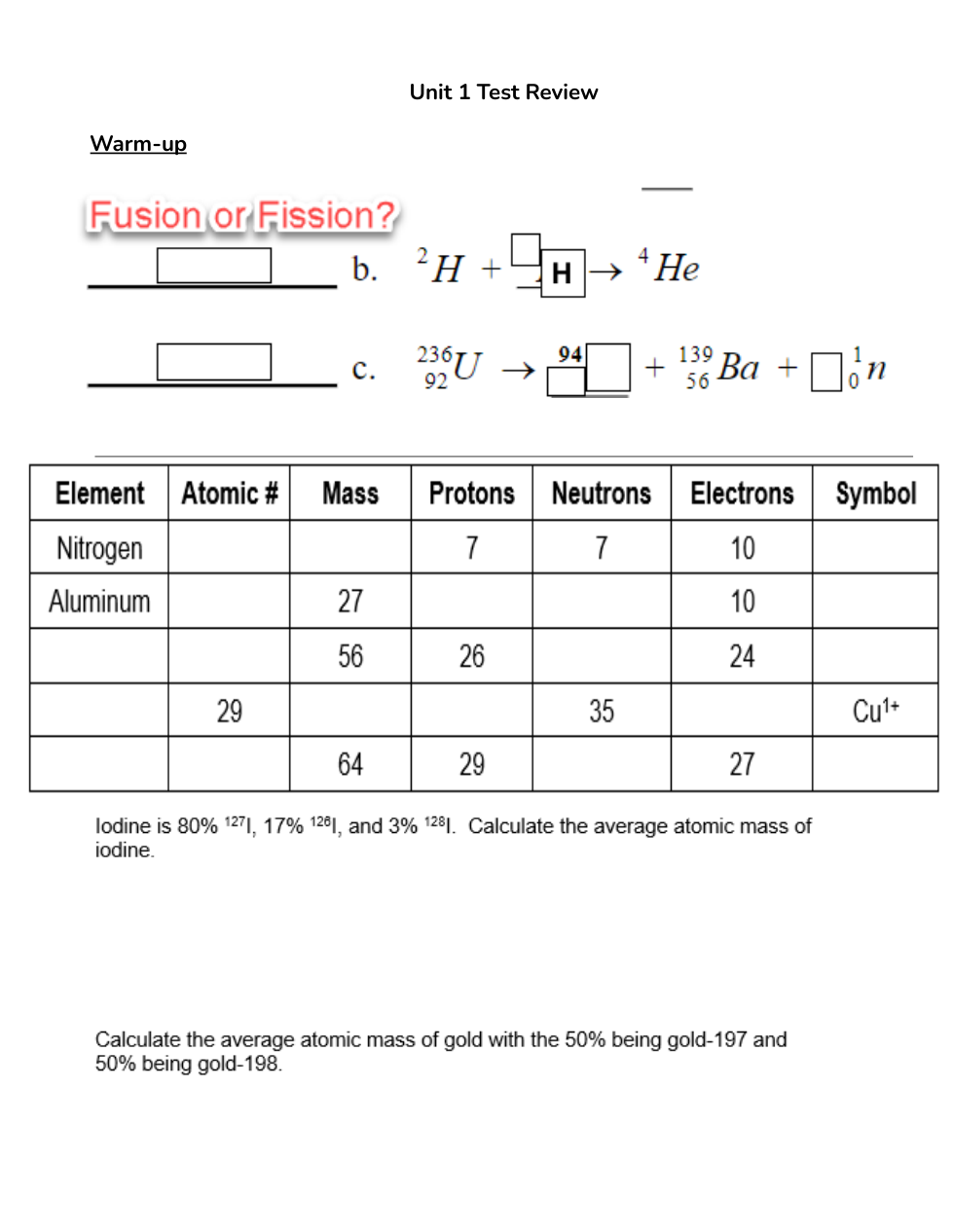 9/9: Unit 1 Test Review