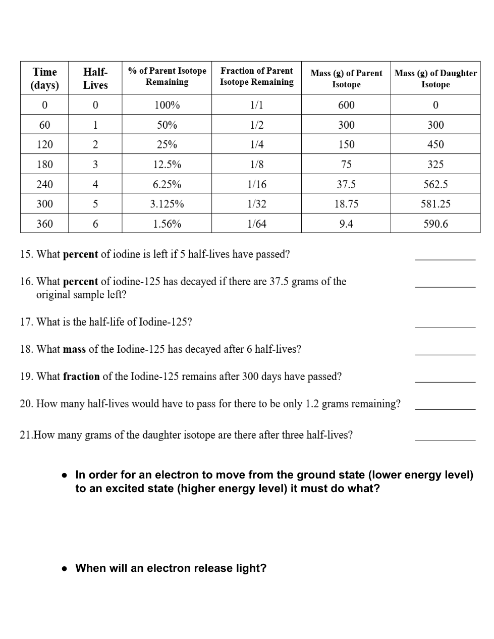 In order for an electron to move from the ground state (lower energy level) to an excited state (higher energy level) it must do what?