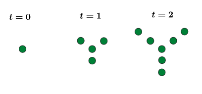 How many dots will there be at t=50?