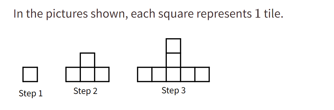 Sarah counted the number of tiles at each step and made a table. She explained that the number of tiles in each figure was always 3 times the step number minus 2 .