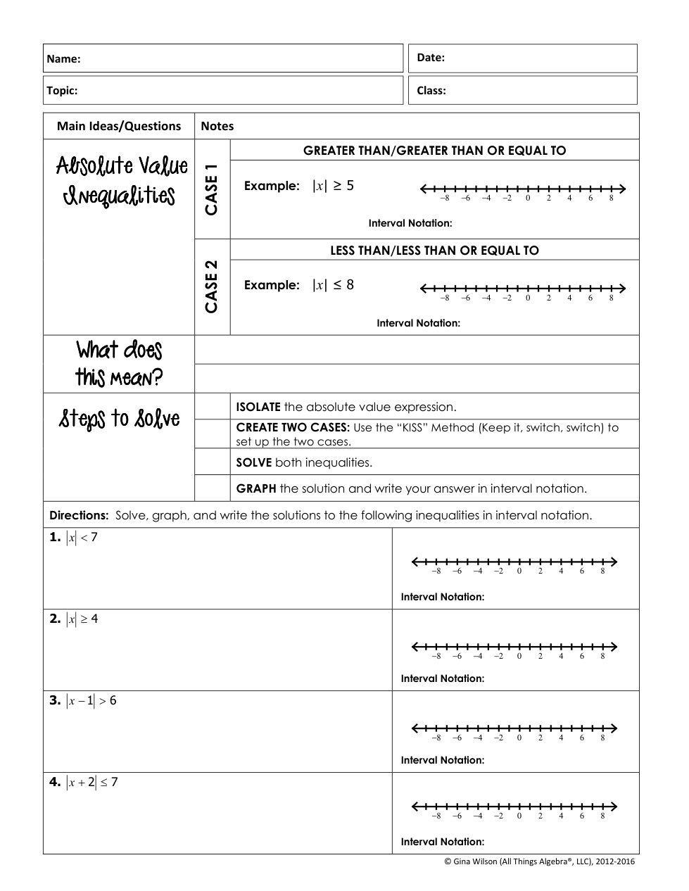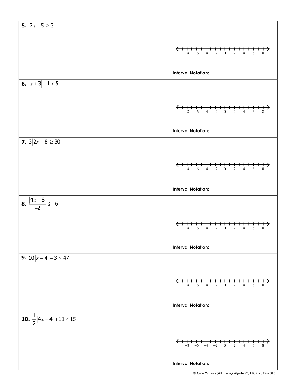 9-7 Notes: Absolute Value Inequalities (Part 2)