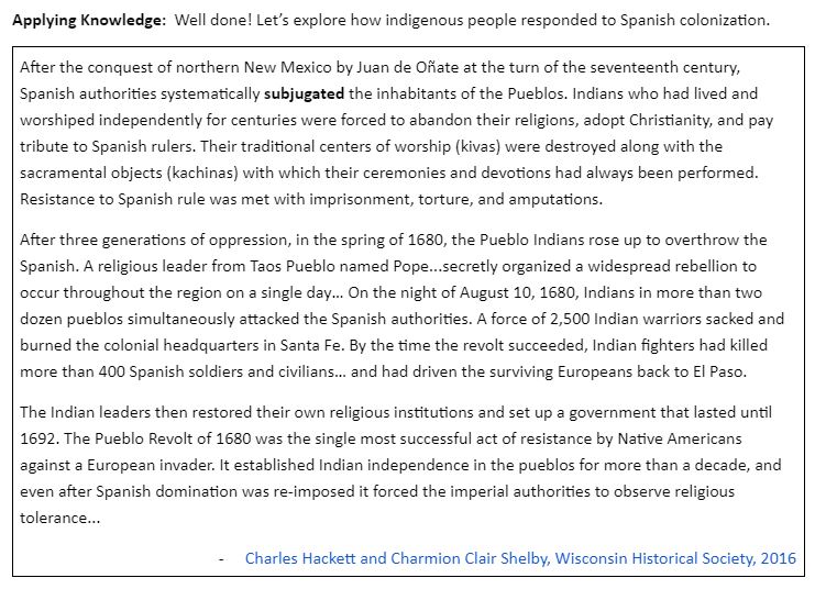 Exit Ticket: The main idea from today's passage about Pope's Rebellion is that in 1680, Pueblo Indians rose up against