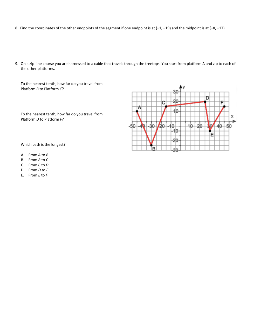 To the nearest tenth, how far do you travel from Platform B to Platform C?