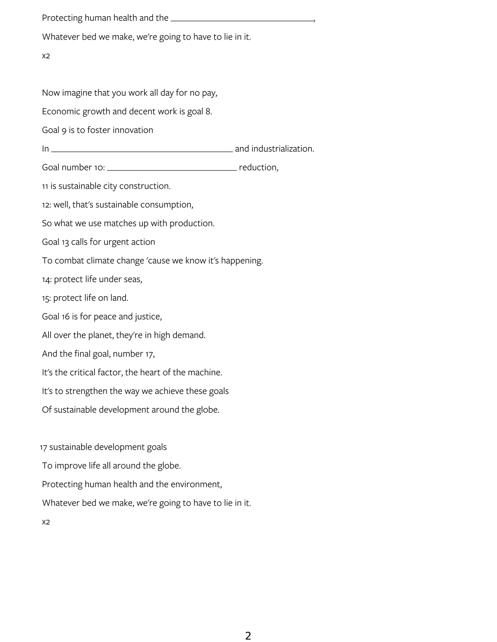 13. Calls for urgent action, to combat ______ ______ 'cause we know it's happening.