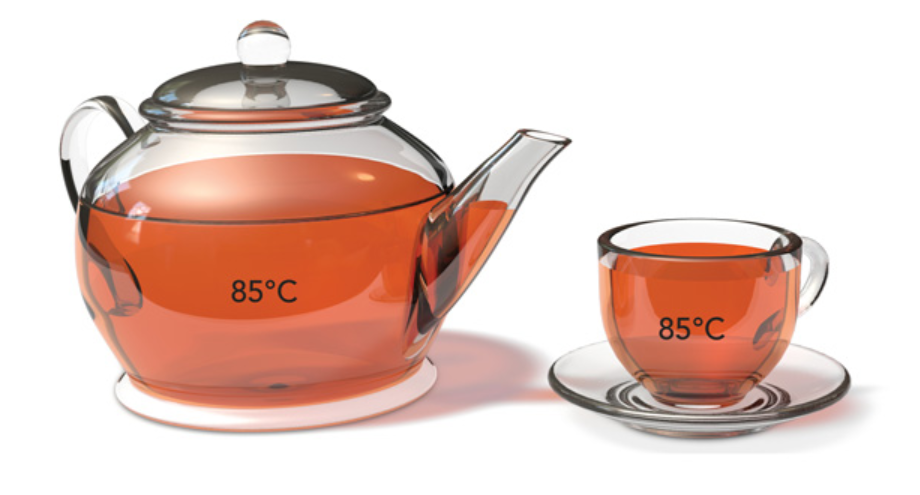 If you wanted to cool both the pot and the cup of tea to 80 degrees Celsius, whichone would take longer to cool down? Why would one take longer?