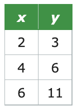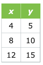 Simplify any fractions. Write an equation for the relationship between x andy.