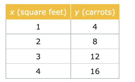There is a proportional relationship between the size of Damon's garden (in square feet),