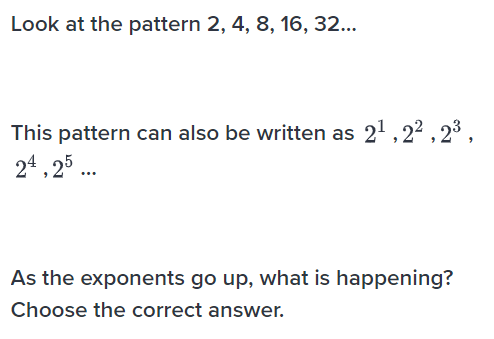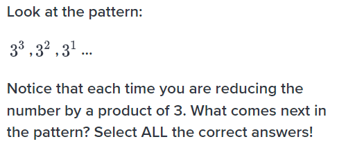 Use the interactive below and answer questions to see how patterns in positive exponents relate to negative exponents.