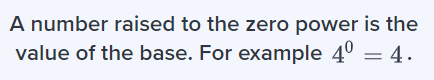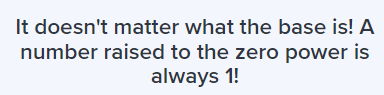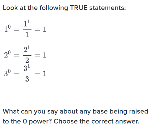 Based on this observation, one could assume that a number raised to an exponent of 0 is always equal to....