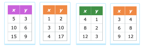 Which table of values represents a proportional relationship between x and y?