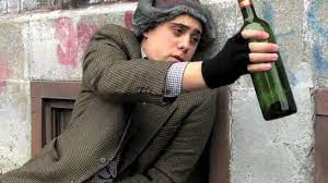 Find the best quote that shows an example of irony with the drunk man in the alley and explain it in complete sentences.