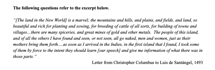 Directions: Please read/view the stimulus first, then identify the choice that best completes the statement or answers the question. All work should be your own thinking, which means notes and outside resources are not allowed.
