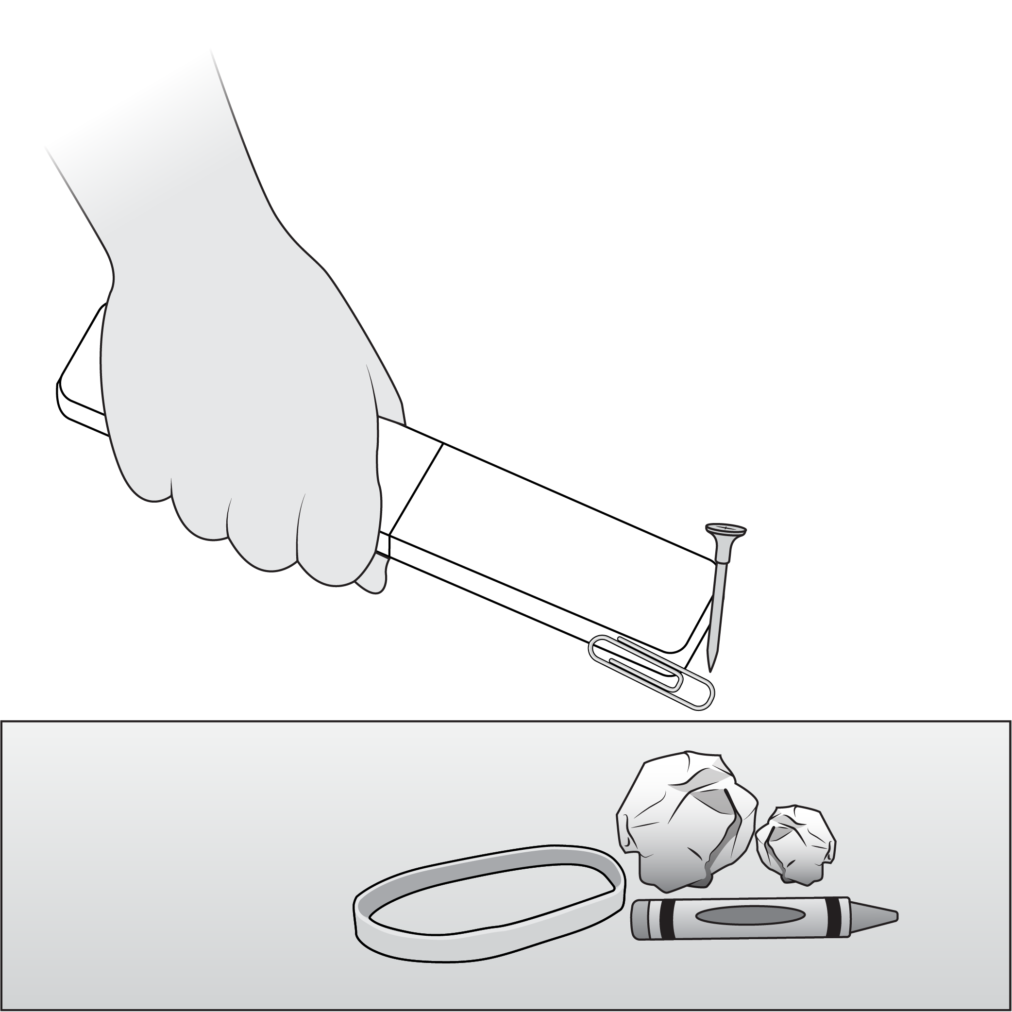 Alicia is testing the __________ of the objects in the pile and discovers that the paper clip and nail are __________.