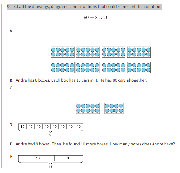 Select allthe drawings, diagrams, and situations that could represent the equation.